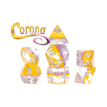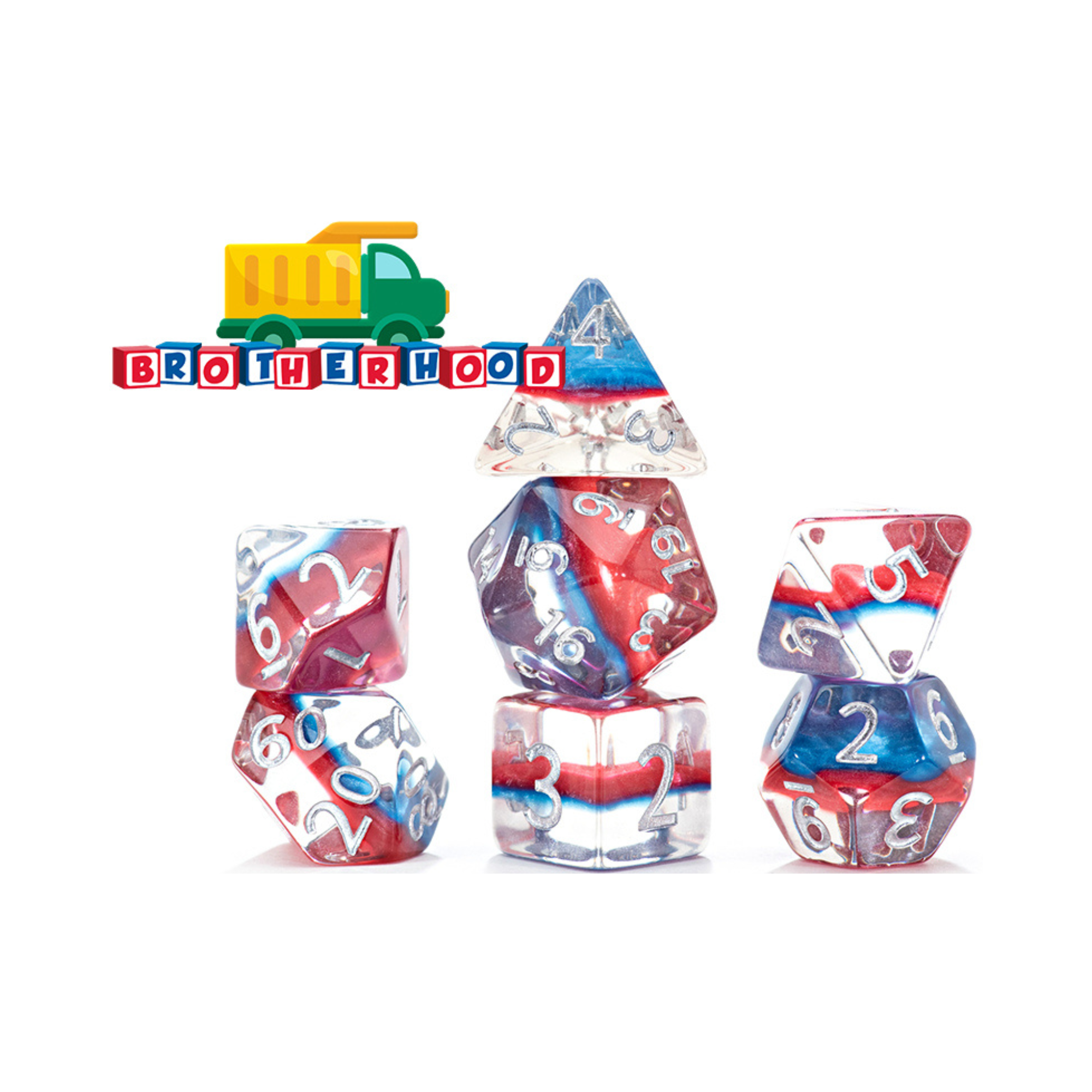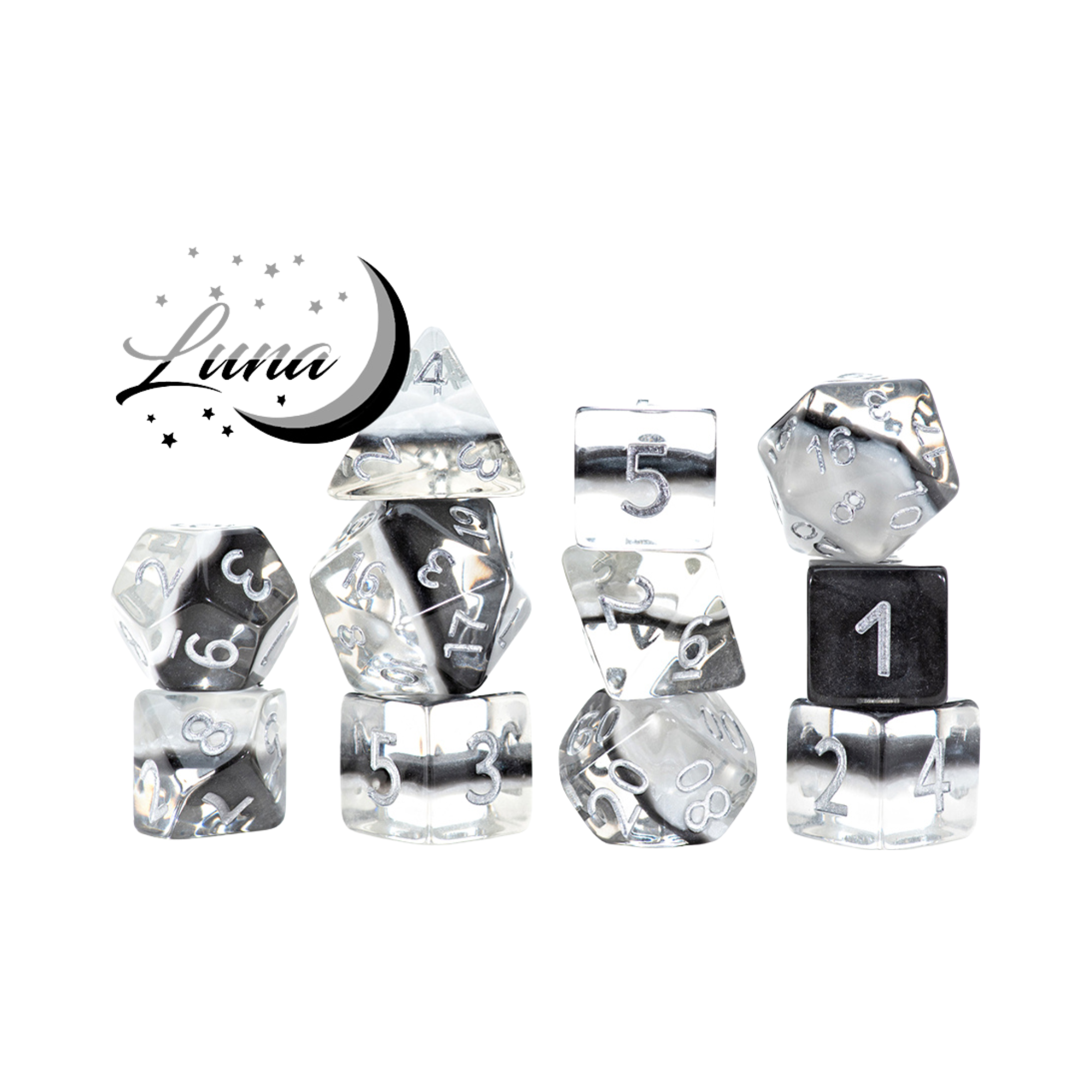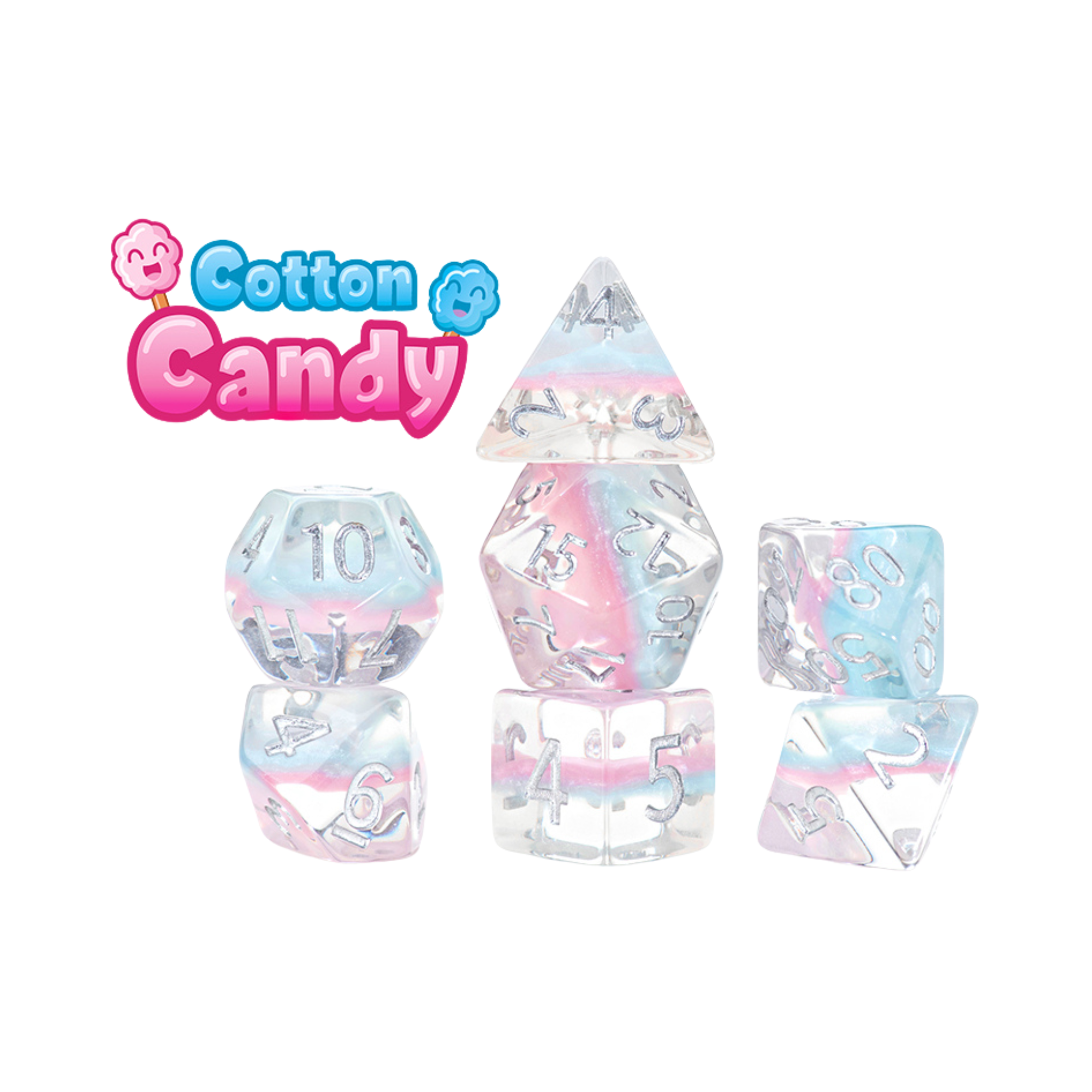 7-Die Sets – Contains a d4, d6, d8, d10, d% (00), d12 and a d20.