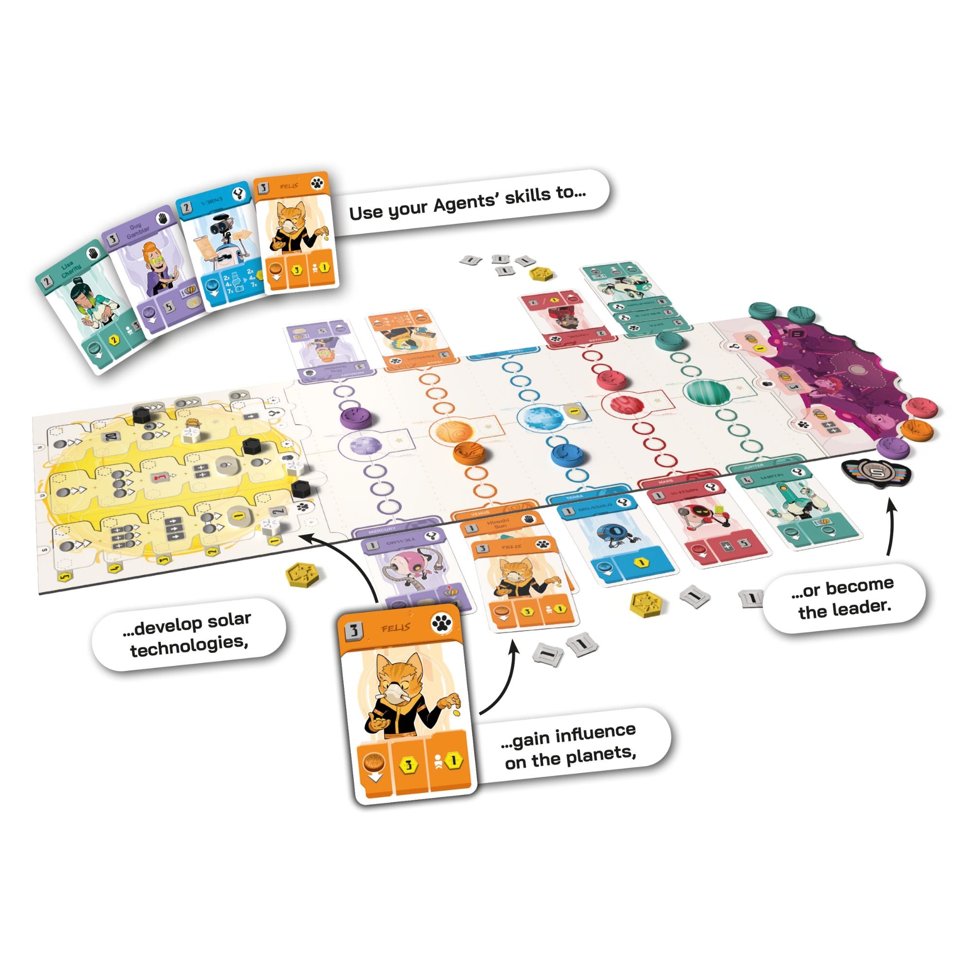 Players struggle for control of the Solar System. Power play, diplomacy, technological development — every strategy can be used to achieve victory.